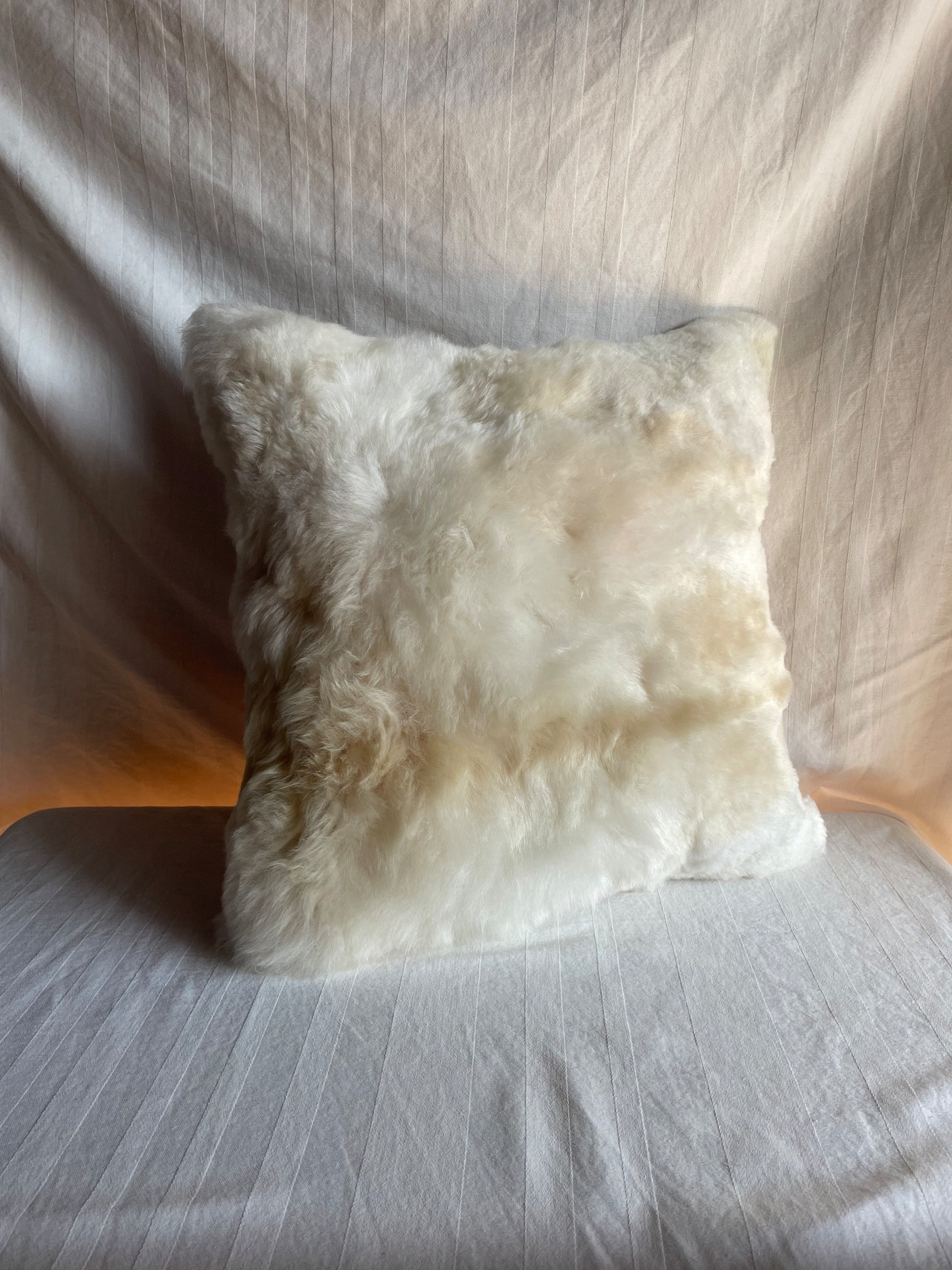 ペルーのベビーアルパカの毛皮クッションカバーです。裏面もアルパカ100%の生地で出来ています。